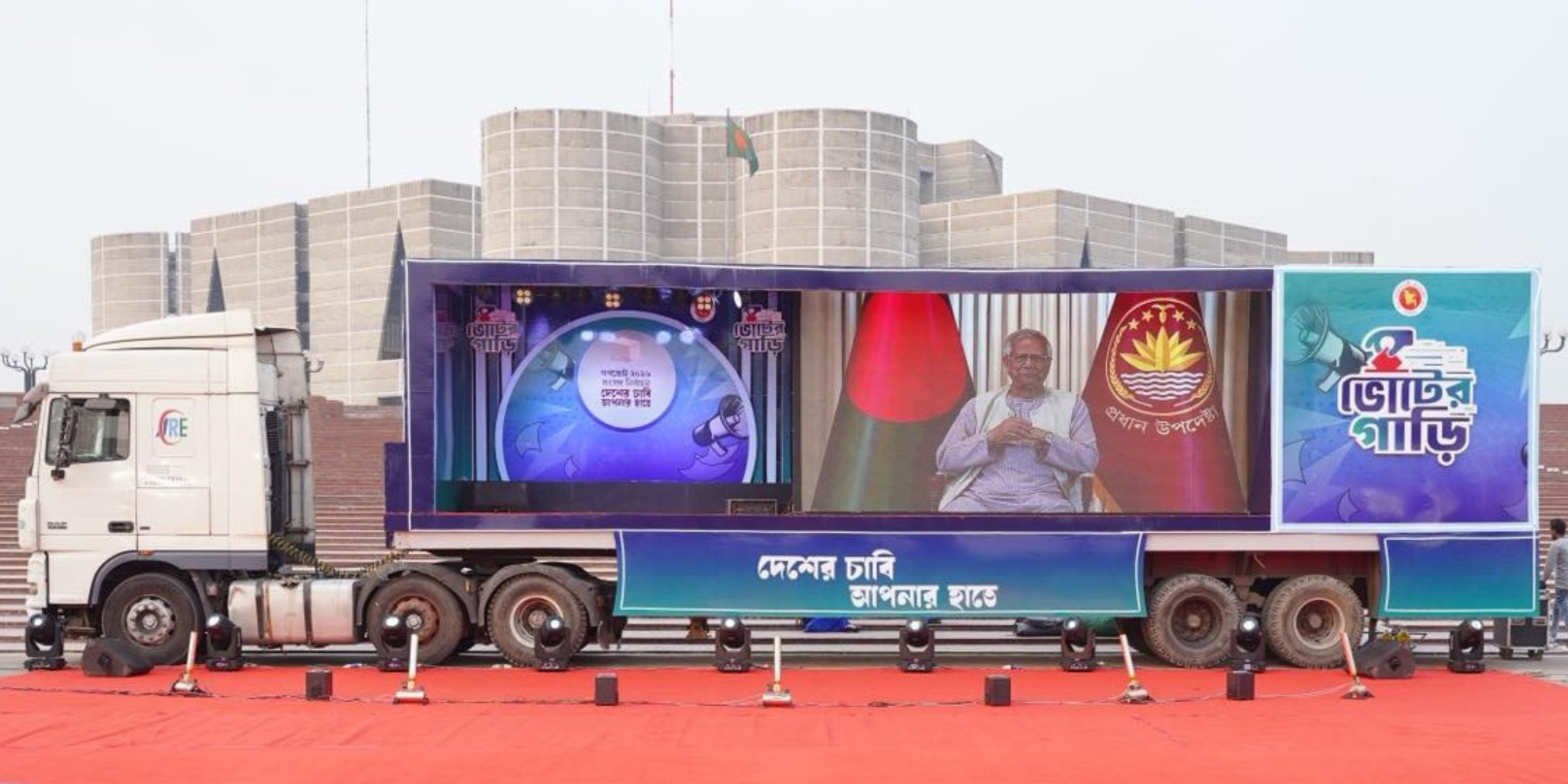ত্রয়োদশ জাতীয় সংসদ নির্বাচন ও জুলাই জাতীয় সনদ বিষয়ে গণভোটকে সামনে রেখে সারাদেশে ভোটার সচেতনতা তৈরির লক্ষ্যে যাত্রা শুরু করেছে দশটি ভোটের গাড়ি—‘সুপার ক্যারাভান’।